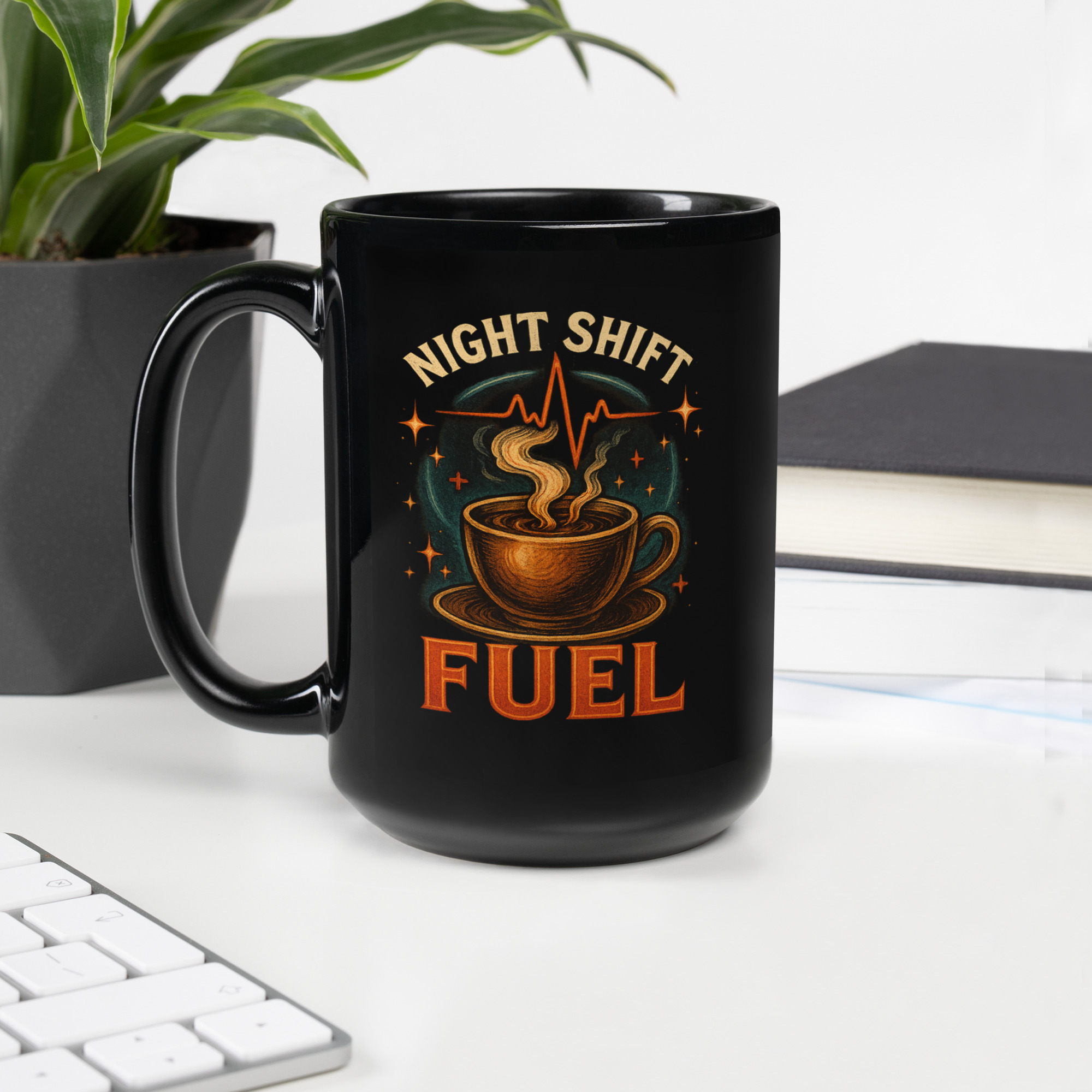 Night Shift Fuel Black Glossy Mug